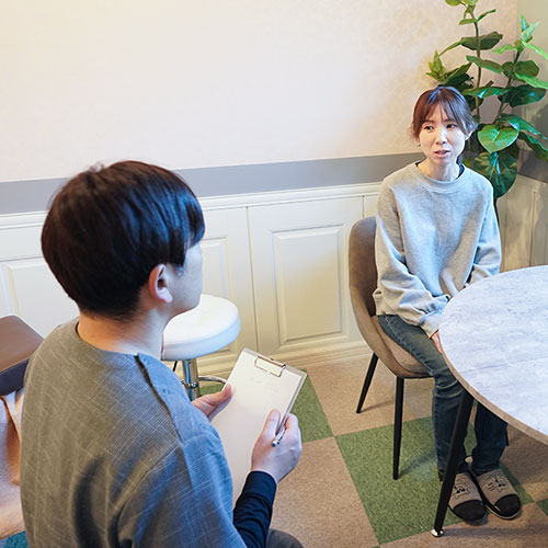 痛みの根本原因は姿勢のゆがみや動きの乱れが大きく関わってきます。皆さんが正常と思っている姿勢や動きは痛む部位にとってストレスになっている事があります。その正常と思っていた異常な状態を突き詰めるのが当店のカウンセリング力です。約4万人を施術する中で患部の症状の発生源(姿勢や動き)を見つける技術を養いました。患部の症状やどのようにしたら痛むのか、どんな状況で症状が発症し、何をすると落ち着くのか。様々な要因から情報をつなげて施術方法を決めていきます。生活様式や仕事業務の作業特徴等もお伺いする場合がございます。それは症状に関連する場合があるからです。ベッドに上がり患部の施術をすぐ初めてしまう事は無くカウンセリングをしっかり行い、根本解決を目指していきます。